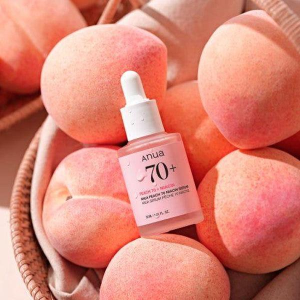 Anua Peach 70% Niacin Serum 30ml is a brightening and hydrating serum designed to give your skin a fresh, radiant glow. Infused with 70% peach fruit extract and 5% niacinamide, this lightweight, juicy serum works to fade dark spots, even out skin tone, and smooth rough texture. Its quick-absorbing formula is perfect for dull, uneven, or dehydrated skin, delivering a healthy, plump, and luminous finish. Gentle yet effective, it is suitable for daily use and fits seamlessly into any morning or nighttime skincare routine.