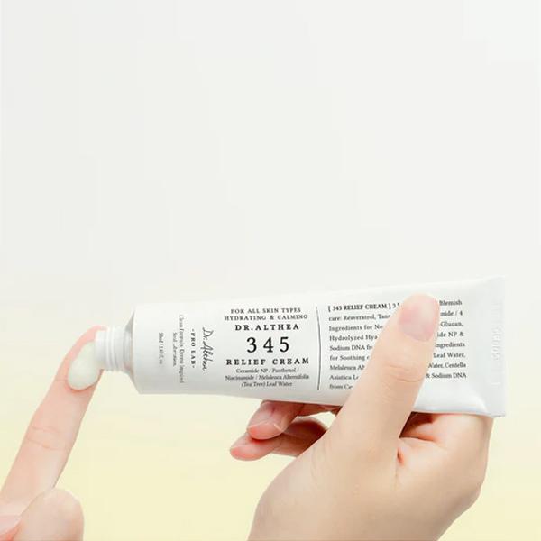Dr. Althea 345 Relief Cream 50ml is a soothing, barrier-repairing moisturizer formulated to calm irritation, strengthen sensitive skin, and restore long-lasting hydration. With a lightweight yet comforting texture, it absorbs quickly without greasiness, making it suitable for all skin types — especially sensitive, reactive, or damaged skin.