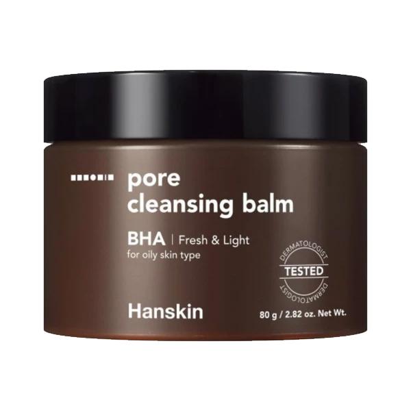 Hanskin Pore Cleansing Balm BHA 80g is a deep-cleansing balm designed to purify pores, remove makeup, and exfoliate dead skin cells. Infused with BHA (Beta Hydroxy Acid), this rich yet easily emulsifying balm penetrates deep into pores to dissolve excess sebum and impurities, leaving skin smooth, clear, and refreshed. Its gentle, non-irritating formula is ideal for oily, combination, and acne-prone skin types while maintaining the skin’s natural moisture balance.