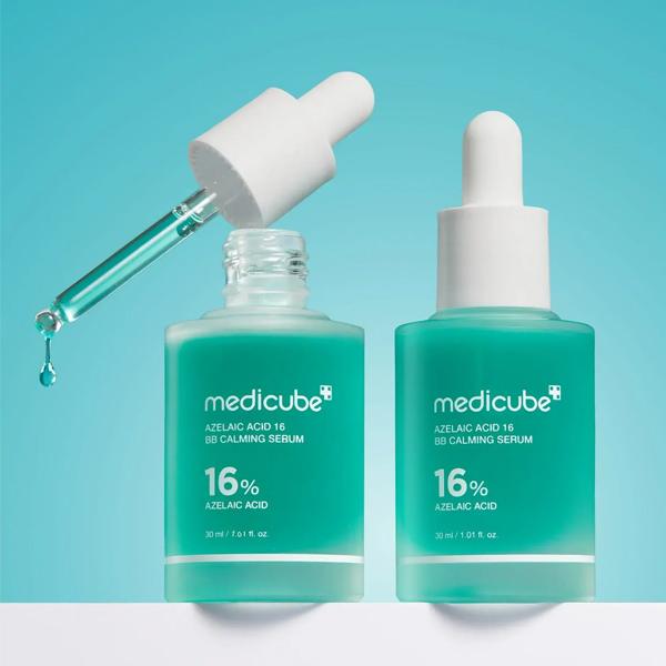 The Medicube Azelaic Acid 16 BB Calming Serum is a high-performance, dermatologist-tested solution designed to target blemishes, redness, and dark spots. With a potent 16% azelaic acid complex, this lightweight serum effectively calms irritated skin, refines texture, and promotes a clearer, radiant complexion. Its soothing formula is suitable for all skin types, including sensitive, oily, and acne-prone skin, making it an essential step in any daily skincare routine.
