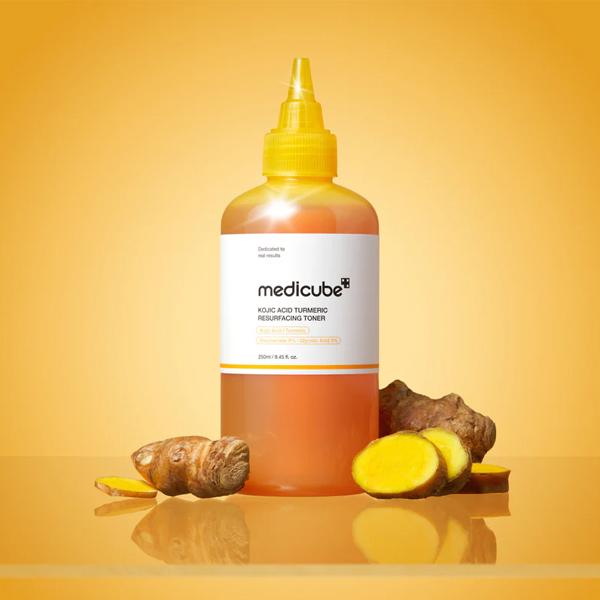 The Medicube Kojic Acid Turmeric Resurfacing Toner is a multi-action, brightening toner designed to even out skin tone, reduce dark spots, and refine rough texture. Its lightweight, non-sticky formula gently exfoliates while providing hydration, making it suitable for all skin types, including sensitive and acne-prone skin. Infused with a potent blend of kojic acid, turmeric extract, niacinamide, and glycolic acid, this toner works to reveal smoother, clearer, and radiant skin for both the face and body.