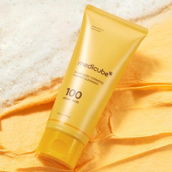 The Medicube Kojic Acid Turmeric Toning Cleanser 120g is a multi-action facial cleanser designed to brighten your complexion, refine pores, and gently remove impurities. Its creamy yet rich foaming texture effectively lifts away makeup residue, excess oil, and dead skin cells while keeping the skin hydrated and comfortable. Perfect for all skin types, especially those with dull, uneven, or blemish-prone skin, this cleanser combines brightening and soothing ingredients to improve overall skin tone and texture.