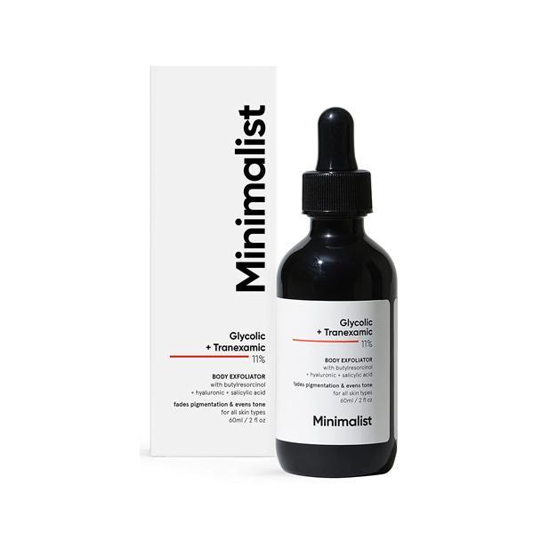 Transform rough, dull skin into smooth, radiant perfection with the Minimalist Glycolic + Tranexamic 11% Body Exfoliator 60ml. This targeted body treatment combines the power of glycolic acid and tranexamic acid to gently exfoliate dead skin cells, unclog pores, and reduce pigmentation. Its lightweight, non-sticky formula absorbs quickly, making it ideal for areas prone to uneven tone, dark spots, or rough patches. Suitable for regular use, this exfoliator revitalizes your skin, leaving it refreshed, luminous, and irresistibly soft.