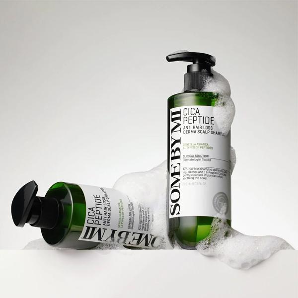 Revitalize your scalp and support healthy hair growth with the Some By Mi Cica Peptide Anti Hair Loss Derma Scalp Shampoo 285ml, a functional, hypoallergenic shampoo designed for all hair types. Enriched with soothing Cica (Centella Asiatica) and a potent blend of 11 peptides, this shampoo helps strengthen hair roots, reduce hair fall, and nourish your scalp deeply. Free from sulfates and silicones, it gently cleanses without irritating sensitive scalps, leaving hair feeling refreshed, soft, and manageable. Its dense, rich foam provides a calming yet invigorating experience, creating an ideal environment for healthy, strong hair.