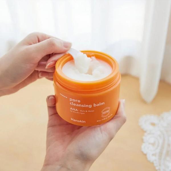 The Hanskin Pore Cleansing Balm AHA 80g is a gentle yet effective oil-based cleansing balm designed to remove makeup, sunscreen, and daily impurities while improving skin texture. Specially formulated for dry to combination skin, this balm delivers a deep cleanse without stripping the skin of its natural moisture.